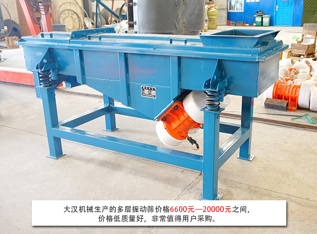 隨著生產節(jié)奏的加快,單層直線振動篩已經完全無法滿足生產需求,多層直線振動篩就是由直線振動篩改造升級的一款高效篩分設備。多層直線振動篩可以將物料分級為多種規(guī)格,實現(xiàn)一次投料出多種規(guī)格物料,可以有效節(jié)省時間成本。由于不同廠家生產的多層直線振動篩型號、生產工藝等不同,所以就導致市場上多層直線振動篩價格不一,那么一臺多層直線振動篩一般都多少錢呢?大漢小編將為您解答: