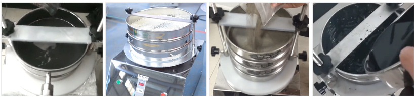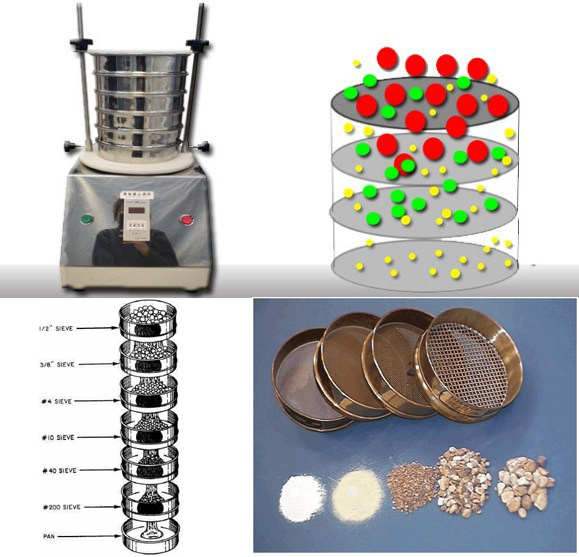 電磁試驗篩由底座、電磁發(fā)生器、篩盤及標準篩組成。采用電磁作為驅(qū)動力,使產(chǎn)品均一分布于整個篩網(wǎng),并做三維振蕩(具有上下振動、前后往復(fù)運動、左右擺動三種振動方式),這種特殊的振蕩方式有效地防止近篩顆粒堵塞篩孔,使得篩下顆粒得以有效通過,根據(jù)粒度分級的需要用戶可以選用不同目數(shù)的標準篩,使小于篩網(wǎng)??的物料顆粒篩入下層篩框內(nèi),以達到分離、分級、確定粒徑的目的。
