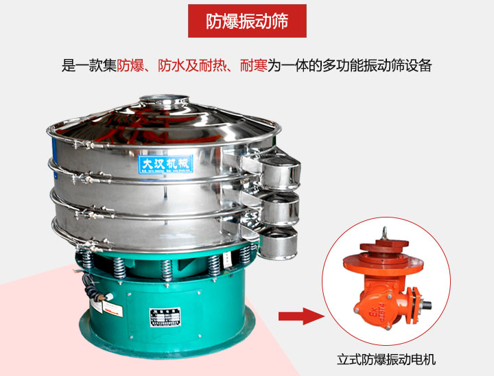 防爆振動篩是針對一些易產生爆炸行業的研發設計而成多功能振動篩設備
