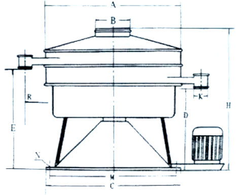 圓形搖擺篩主要由進料口、上蓋、觀察孔、篩框、密封圈、出料口、網架、束環、主樞軸總成、調整塊、彈簧、主軸總成、皮帶輪、底座、檢查孔、電機等部分組成。
